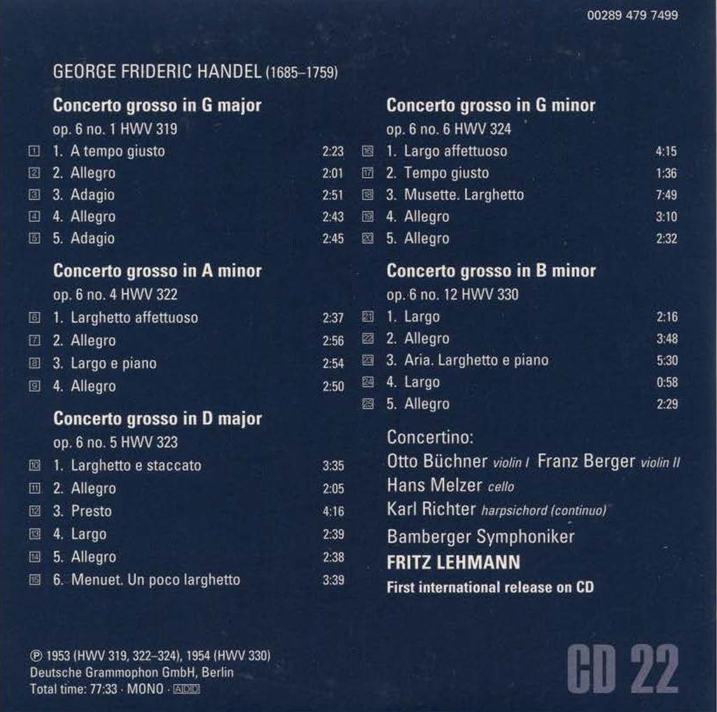 SideA 17 Handel: Concerto grosso in G minor Op.6 no.6 HWV 324 II. Tempo giusto