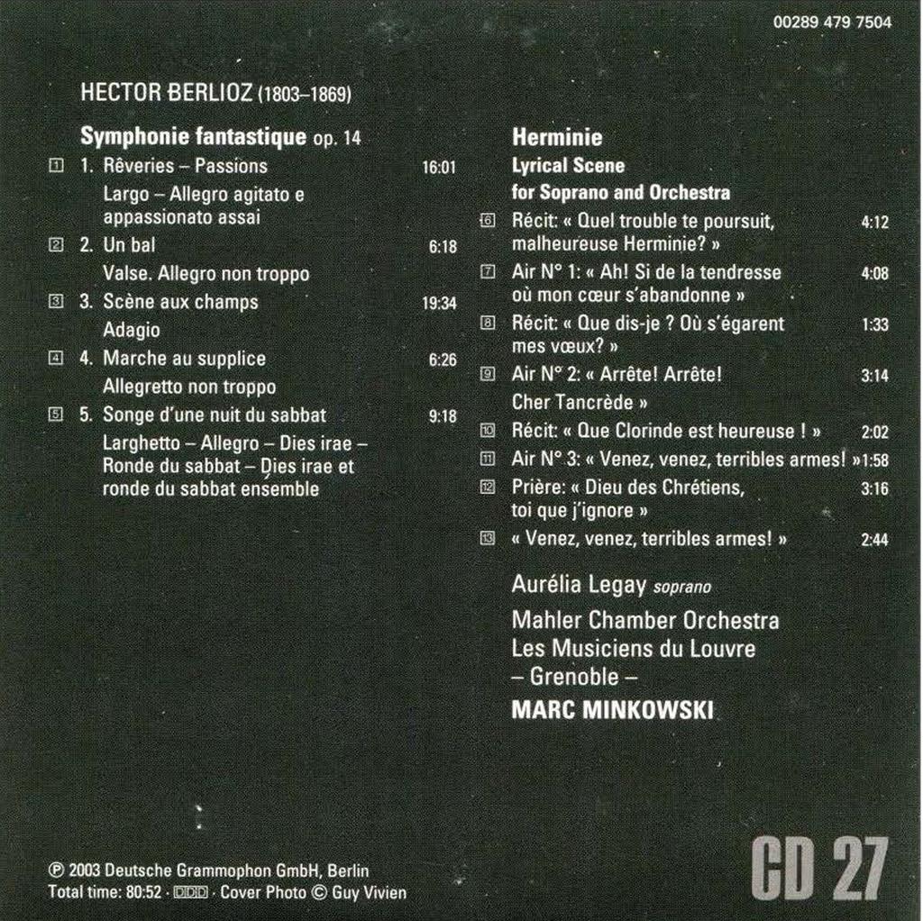 Hector Louis Berlioz - 柏辽兹 | Aurelia Legay, aoprano/Marc Minkowski - Mahler Chamber Orchestra/Les Musiciens du Louvre | 古典 | 1星